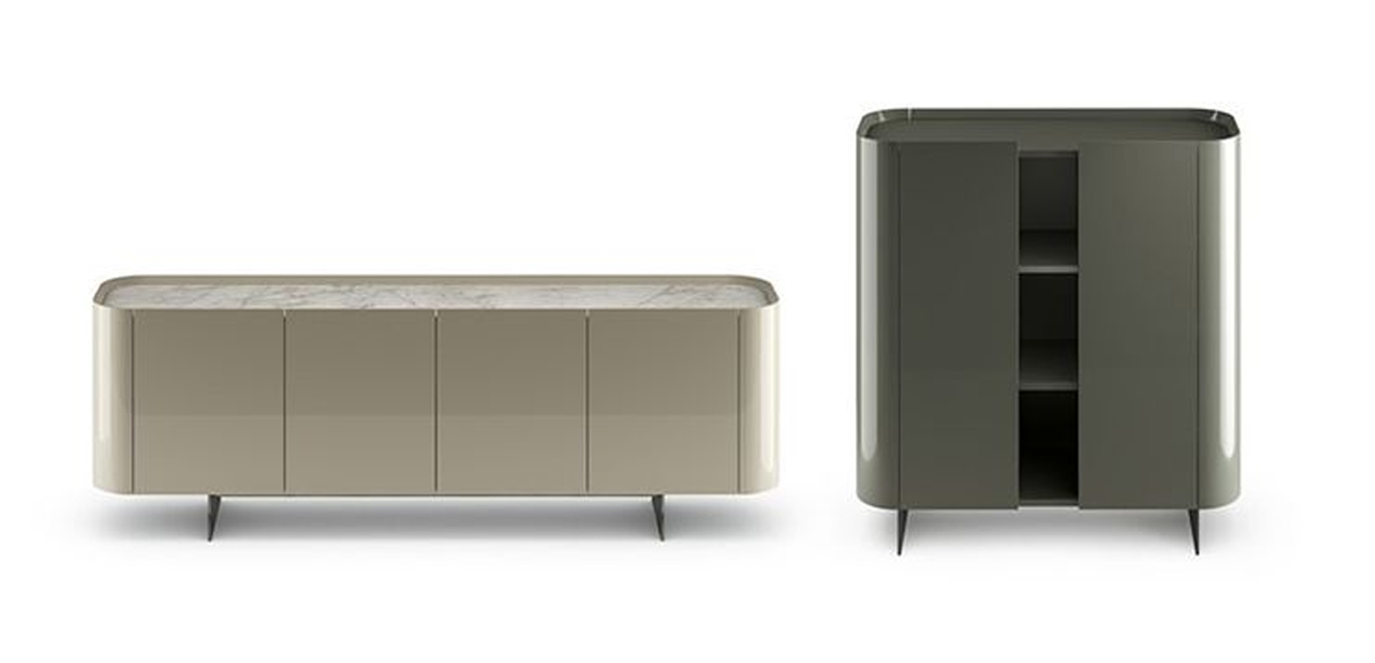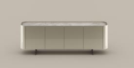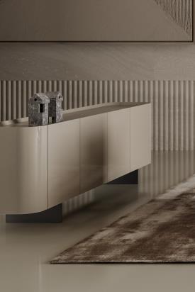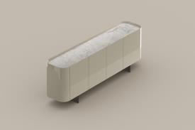 Les buffets Arragan High et Arragan Low, conçus par Gabriele et Oscar Buratti, se distinguent par leur équilibre subtil entre rigueur formelle et douceur des lignes. La continuité fluide de leurs surfaces leur confère une identité sculpturale et harmonieuse. Véritables volumes architecturaux, ces buffets interagissent avec l’espace en s’intégrant aussi bien en élément mural qu’en cloison autoportante à double face, redéfinissant ainsi la perception de l’environnement. Réalisés en bois laqué, en finition brillante ou mate, ils peuvent être dotés d’un plateau en céramique ou dans la même finition, soulignant ainsi la richesse des matières dans un langage minimaliste. Le dessus abaissé prend la fonction d'un plateau, rendu unique par le détail effilé de la porte, qui devient une poignée, ajoutant de la distinction au design. Disponibles avec piètement en lame ou base avec socle, ces buffets s’adaptent à diverses exigences stylistiques. Leur structure, parfaitement équilibrée en volumes et proportions, leur permet d’articuler l’espace avec élégance, offrant une présence affirmée mais jamais intrusive. Éléments de caractère, Arragan High et Arragan Low enrichissent l’intérieur avec une sophistication discrète et intemporelle.