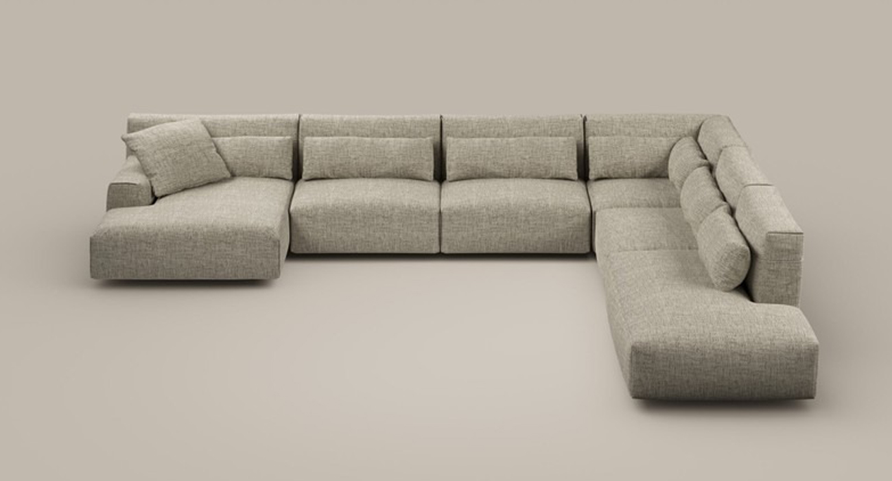 Bonaldo Design. Gabriele et Oscar Buratti Dimensions : l 432 x h 84 x p 372 cm Belloalto est le nouveau système de canapés modulables dessiné par Gabriele et Oscar Buratti pour Bonaldo. Son nom lui-même est une déclaration d’intentions : en effet, sa caractéristique distinctive est la hauteur généreuse du dossier, qui offre non seulement un soutien parfait pour les épaules et la tête mais aussi une expérience de détente d’une excellence absolue. Deux éléments horizontaux exercent une fonction à la fois esthétique et fonctionnelle : le coussin lombaire, qui coupe horizontalement le dossier, et l’accoudoir bas et large augmentent ultérieurement le confort tout en équilibrant les proportions générales du canapé. Belloalto est un système polyvalent, qui permet de composer des canapés linéaires et d’angle grâce à l’ajout de chaises longues et d'éléments terminaux, ces derniers sont disponibles également avec des accoudoirs hauts dans la continuité du dossier. canapé angle