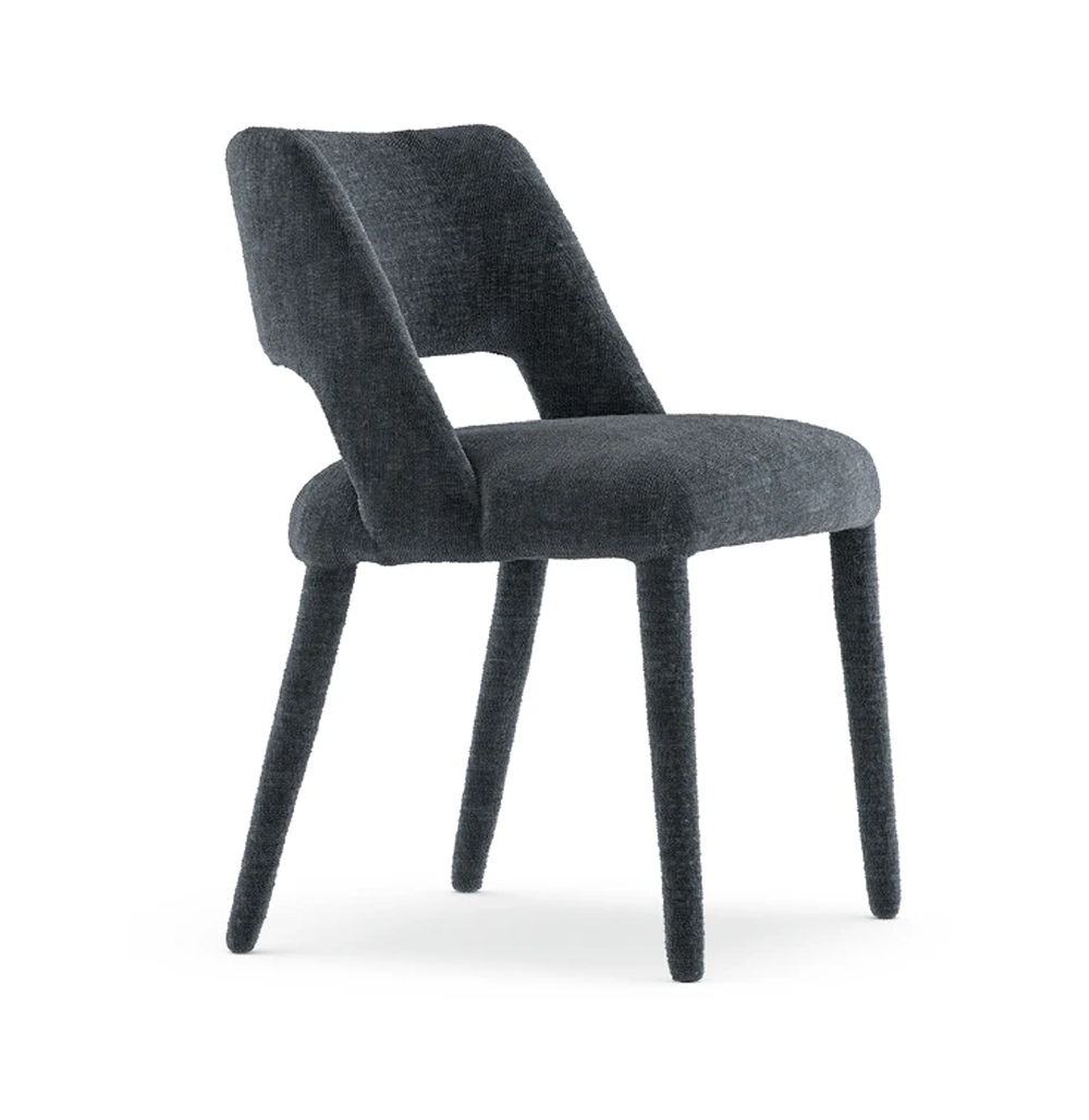La chaise Mask, avec sa forme légère et son souci des détails, se distingue par son dossier ouvert, où le vide fait partie intégrante du design. L'équilibre entre présence et absence donne à la chaise un caractère aéré et contemporain, dans un jeu de soustraction qui en allège la structure. Tout comme un masque, qui cache et révèle en même temps, le design de Mask joue avec des pleins et des vides, en transformant l’alternance entre ces éléments en un détail expressif. Les lignes nettes, précises, jamais rigides épousent la douceur du revêtement en tissu, éco-cuir ou cuir souple. Le résultat est une chaise à la personnalité résolue, qui offre une sensation de familiarité naturelle dans de nombreux contextes d’ameublement. Elle est également disponible dans la version avec accoudoirs : Miss Mask.