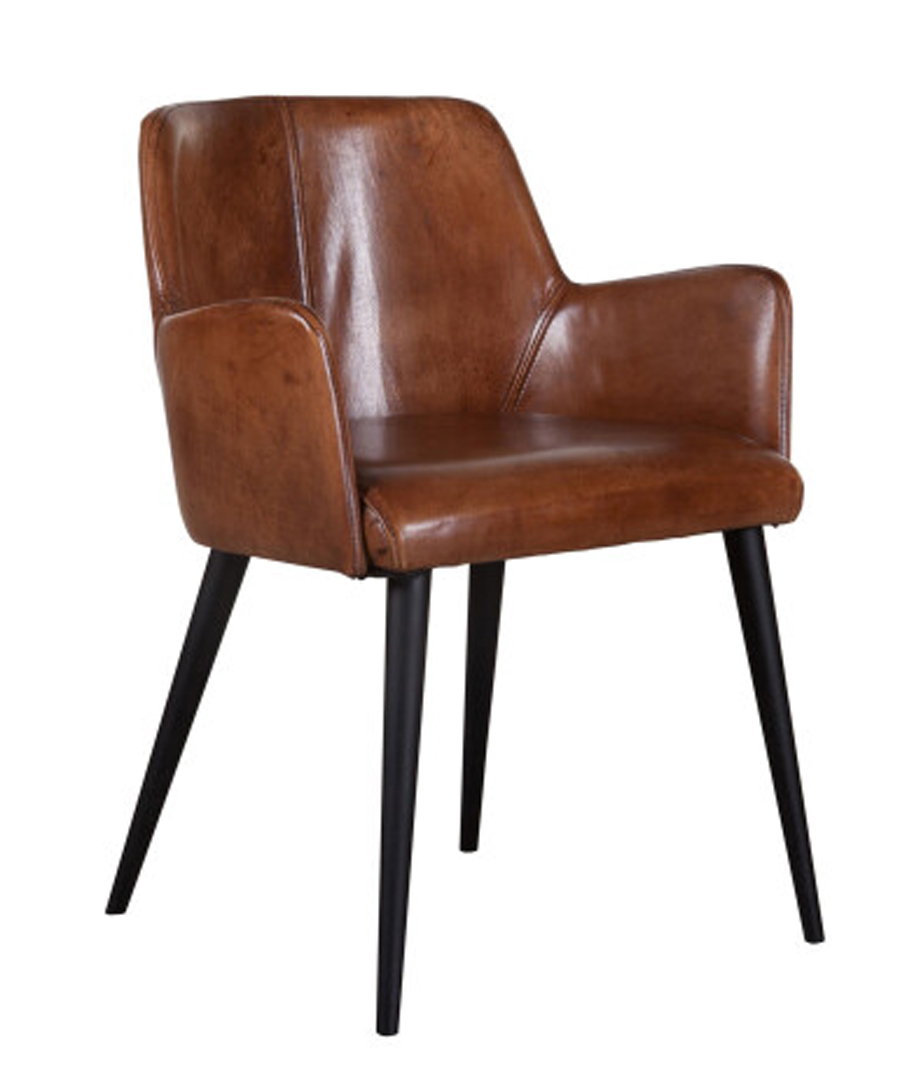 Cette magnifique chaise a une structure solide en bois revêtue d'un cuir de buffle recyclé. Les lignes douces lui donnent un aspect intemporel et de caractère. Les pieds noirs portent l'assise d'une manière spéciale. Les pieds écartés garantissent la stabilité. L'assise de la chaise est rembourrée de mousse d'une densité de 25 kg/m³ pour plus de confort. La hauteur (44,5 cm) et la profondeur (46,5 cm) de l'assise permettent également aux personnes de grande taille de s'y asseoir. confortablement.