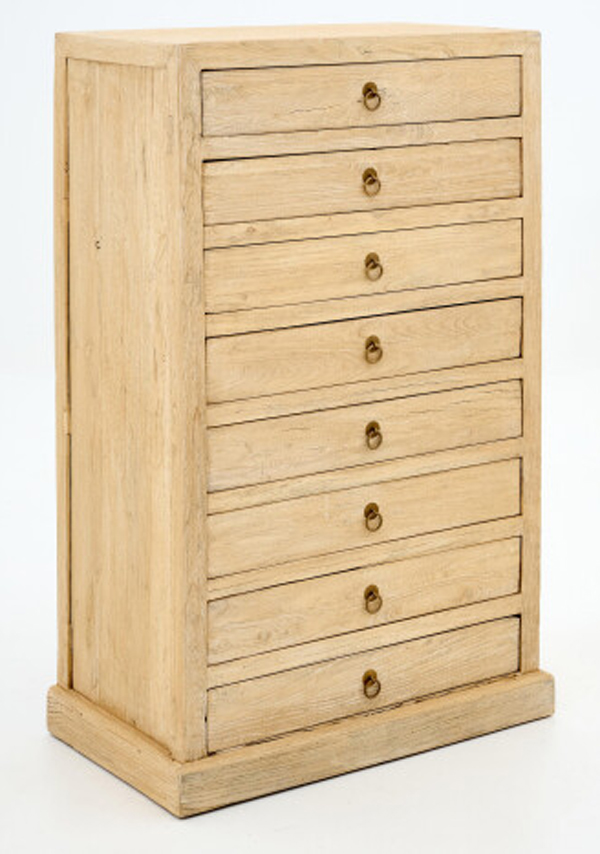 Réf. 0100300225 Dimensions : l 75 x h 125 x p 45 cm commode, 8 tiroirs Informations supplémentaires Note Existe dans d'autres déclinaisons Matériel Pièce principale: Orme, Tiroir: Orme, Matériel: Métal