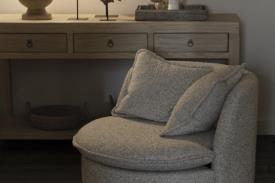 Réf. 0200400550 Dimensions : l 98 x h 65 x p 105 cm fauteuil, rotatif Informations supplémentaires Consignes d'entretien Rotatif Matériel Pièce principale: Textile, Partie inférieure: Bois