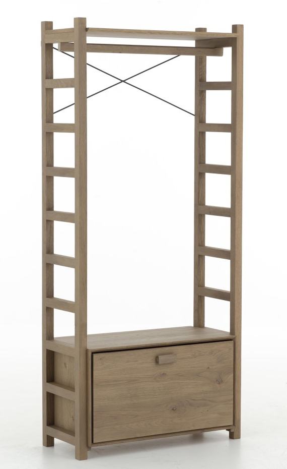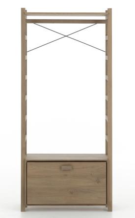 ABER, étagère à chaussures, chêne altéré, avec tringle et des étagères