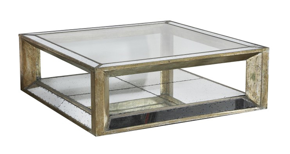 table basse, verre miroir et bois, carrée