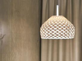 Flos Design. Patricia Urquiola, 2012 - F7766009 Dimensions : Ø 50 x h 32/270 cm Suspension à lumière diffuse. Diffuseur externe en polycarbonate. Diffuseur interne en polycarbonate opale moulé par injection. Environnement Intérieur – emplacement sec lampe suspension