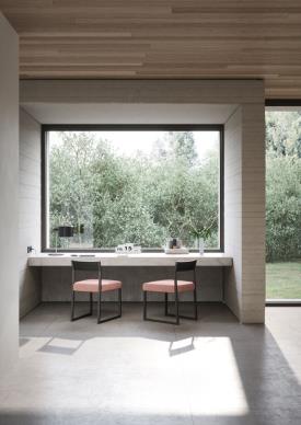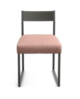 Inspiration orientale pour la chaise La-mu, avec piètements luge en bois et assise rembourrée. Dimensions : l 46 x h 75 x p 50 cm chaise