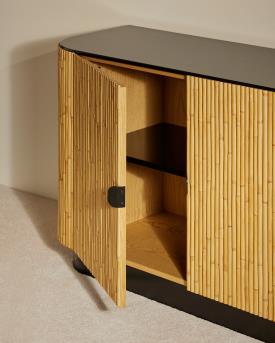 Pariant sur le mariage heureux entre le beau et l'utile, le buffet RIVIERA offre un plateau central aux compositions inspirées. Une invitation aux décorations singulières, réservant derrière ses portes une étagère sur laquelle ranger ses essentiels.