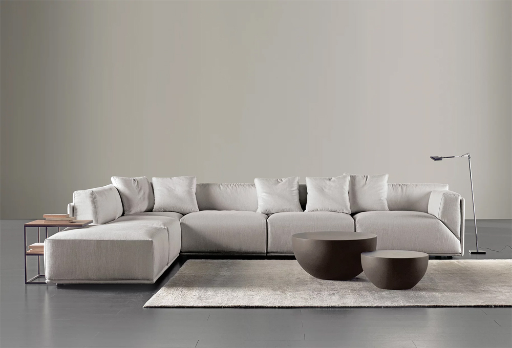 canapé modulable aux formes épurées, dont la polyvalence modulaire est exceptionnelle. La fine coque extérieure, également disponible en cuir pour un look plus masculin et affirmé, accueille les coussins moelleux du dossier et ceux de l’assise sont caractérisés par une coupe nette à 45°. Les éléments composant le canapé sont disponibles en différentes tailles et avec deux profondeurs pour permettre une plus grande polyvalence. La présence de la structure externe offre le point de départ pour des compositions raffinées, de textiles et de cuir ou bien de différents tissus.
