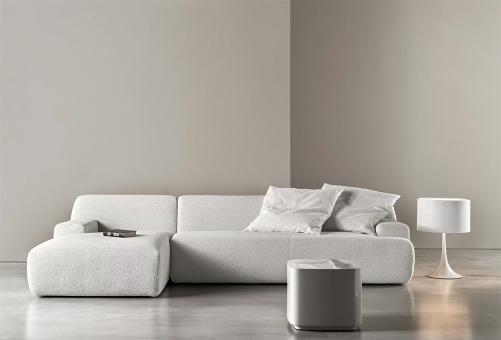 Un mariage parfaitement équilibré entre références d’antan et de solutions linguistiques totalement contemporaines. La collection permet d'associer des canapés linéaires à une chaise longue, en jouant sur la juxtaposition libre des volumes rigoureux et des formes douces et arrondies.