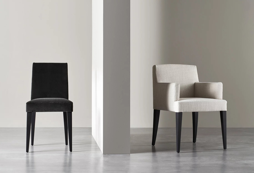 Une forme presque archétypale, pure, d'une sobriété étudiée : c'est la principale caractéristique esthétique de la chaise Cruz, également disponible dans une version avec accoudoirs.