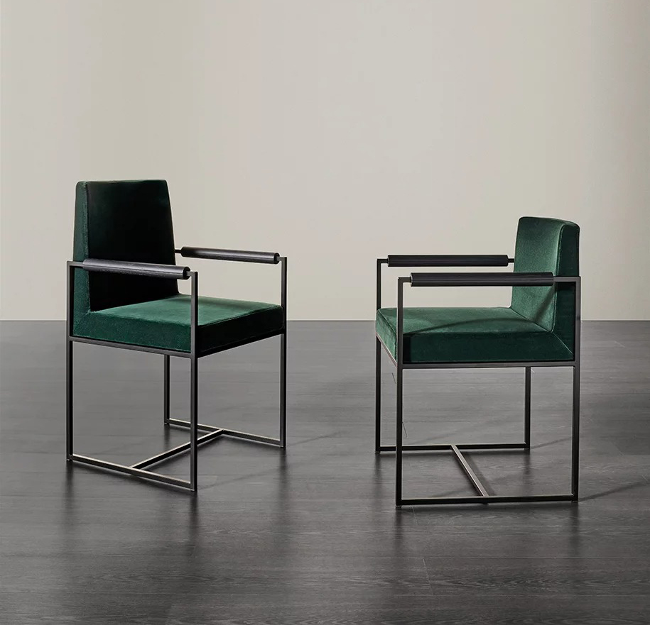C'est la pureté et la légèreté des lignes géométriques qui caractérise « Rider ». Actuellement disponible avec deux hauteurs de dossier différentes, cette chaise e caractérise par une structure métallique tubulaire à section carrée : elle est aujourd'hui enrichie des finitions en laiton bronzé et en acier platine. Les deux versions avec accoudoirs viennent s'ajouter à la collection existante : la première, aux lignes rigoureuses, est entièrement réalisée en métal, tandis que la seconde ajoute une partie tubulaire avec forme cylindrique à l’accoudoir en chêne massif, laqué brillant ou laqué mat, disponibles en différentes couleurs dans le catalogue.