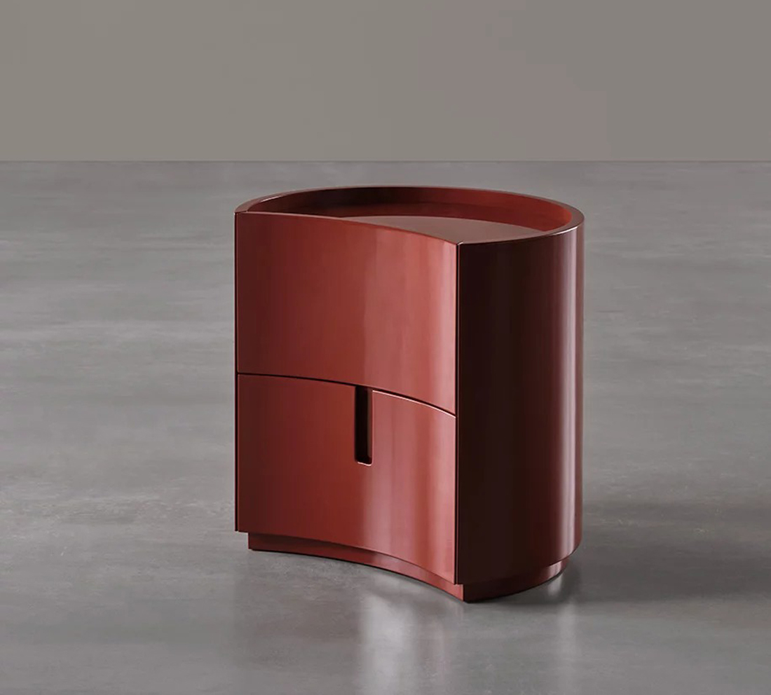 Formes essentielles et fonctionnelles : Johnny est un nouveau complément Meridiani pour la chambre à coucher. Il s'agit d'une table de chevet cylindrique avec tiroirs, définie par un design frontal concave et un plateau abaissé, qui peut être réalisé en laque brillante ou mate, comme la structure, mais aussi en marbre. La collection est complétée par l'option d'un plateau en cuir qui peut être positionné librement sur le plateau.