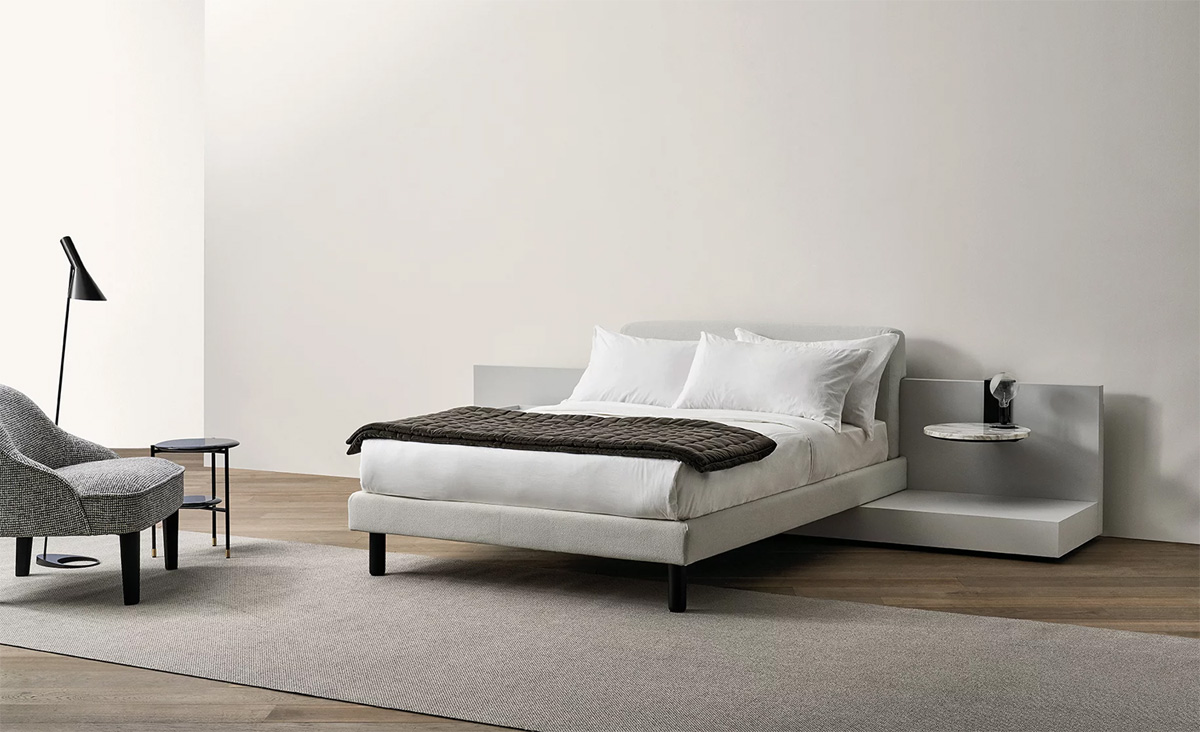 Une collection de lits modulables, riche et raffinée en termes de structure et de détails, qui offre la plus grande liberté de composition avec des têtes de lit et des bases proposées dans de nombreuses tailles, avec plusieurs finitions et différents accessoires. La structure en L constitue le sommier et soutient la tête de lit : les plateaux horizontaux sur les deux côtés du lit peuvent être utilisés pour empiler des livres ou pour placer des lampes, ou peuvent agrémenter de notre vaste gamme d’accessoires. Toute la gamme est une question de flexibilité, et ce, même pour les finitions : la tête de lit et la base peuvent être fabriquées dans le même matériau ou avec des matériaux différents pour une solution visuelle extrêmement riche.
