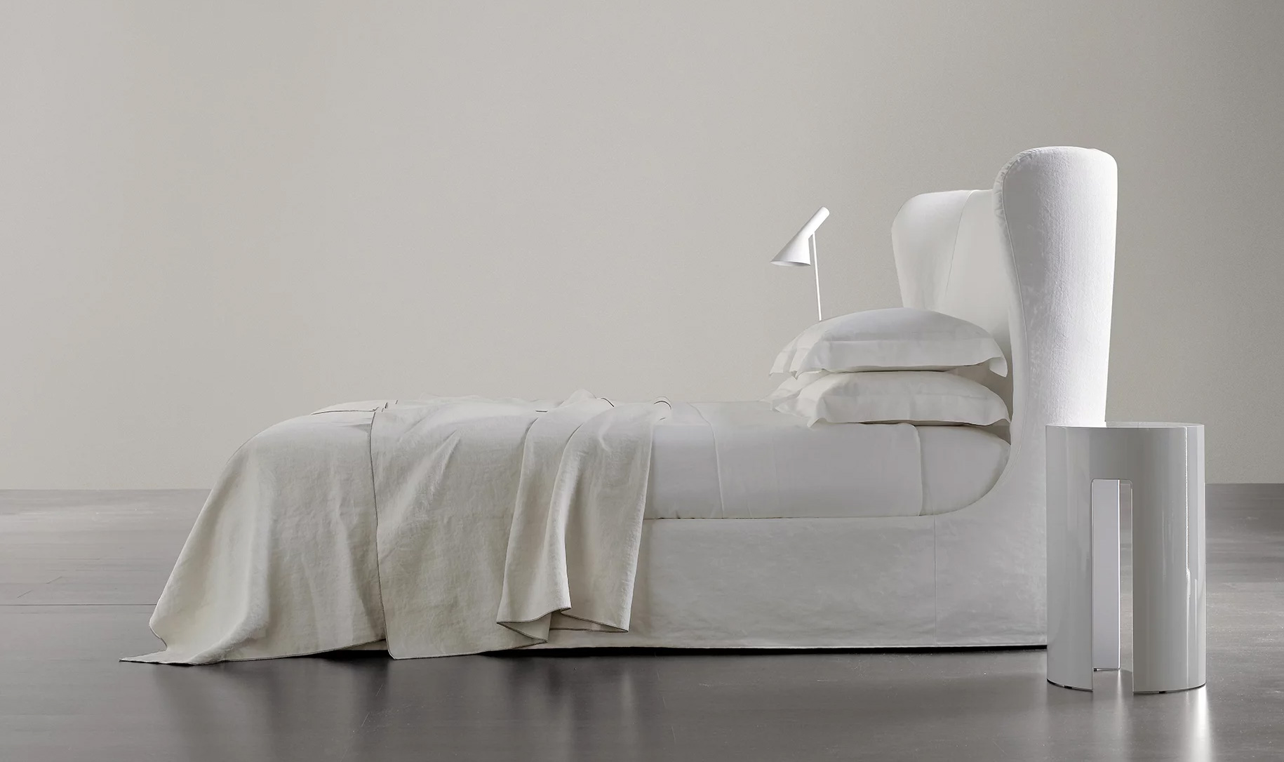L’imposante tête de lit légèrement arrondie caractérise ce lit sophistiqué, capable de réinterpréter et de renouveler la tradition. Une collection iconique, enrichie par le détail précieux de la fabrication capitonnée, avec la tête de lit entièrement réalisée à la main. La version entièrement lisse est également disponible, pour s’adapter à des intérieurs plus contemporains.