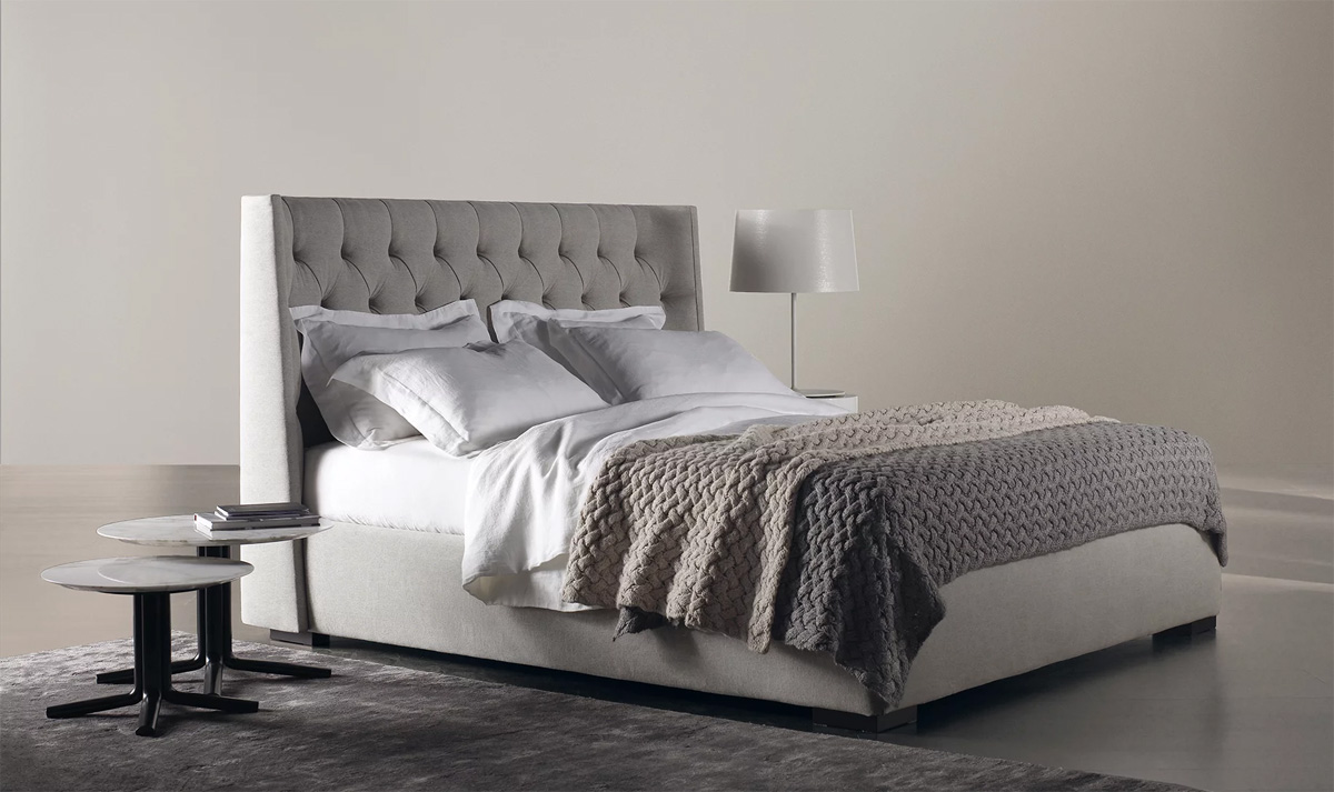 Élégance et rigueur dans le respect des traditions : tels sont les maîtres mots de la collection Turman, caractérisée par la tête de lit capitonnée qui décore et meuble votre espace par l’aspect imposant de ses valeurs esthétiques. La version « low » est également disponible avec une tête de lit capitonnée faite à la main mais avec hauteur standard, sans toutefois faire de compromis en ce qui concerne la richesse du travail artisanal.