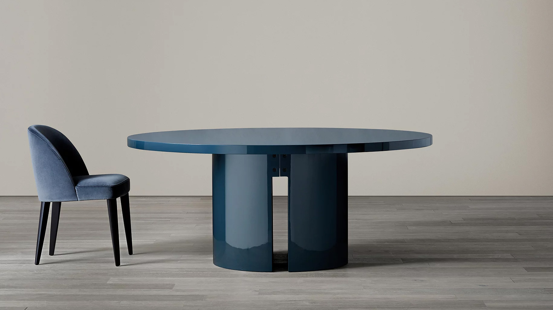 La table sculpturale, visuellement frappante, est mise en valeur par les nombreuses finitions monochromes disponibles pour les différents matériaux. La table Gong est disponible avec des plateaux de taille différente, à la fois très épais et dans une version extrêmement fine avec des bords soigneusement arrondis. Elle dispose de nombreuses possibilités de personnalisation grâce aux finitions de la somptueuse base et du plateau.