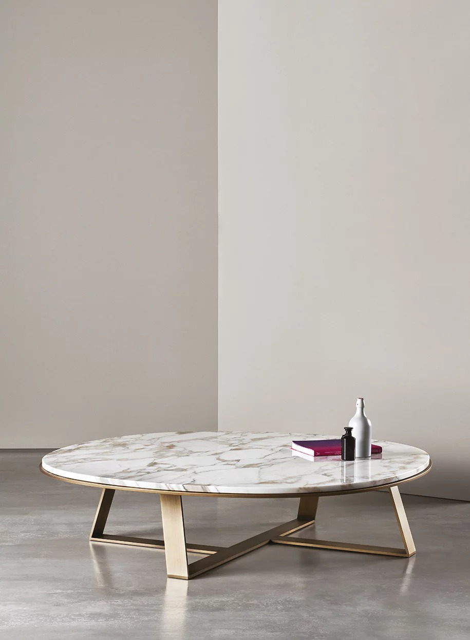 Table basse disponibles en plusieurs dimensions, avec base métallique en laiton bronzé, acier platiné ou laqué en noir, et dessus laqué ou marbré. La simplicité formelle des tables Judd est le fruit d’une analyse approfondie de l’esthétique, de la fabrication et des finitions.