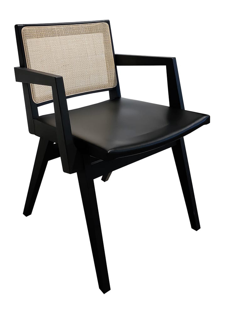 Dimensions : l 57 x h 79 x p 55 cm Chaise en bois, cuir et cannage