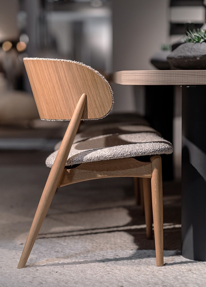 Dimensions : l 57 x h 82 x p 57 cm Structure et pieds en chêne, garnissage fixe chaise