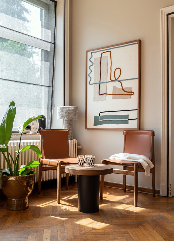 Dimensions : l 47 x h 83 x p 59 cm Chaise en frêne et cuir
