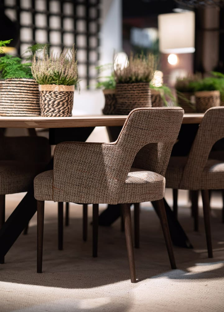 Dimensions : l 60 x h 80 x p 62 cm Structure en hêtre massif, garnissage fixe, pieds en frêne ou tissu chaise avec accoudoir