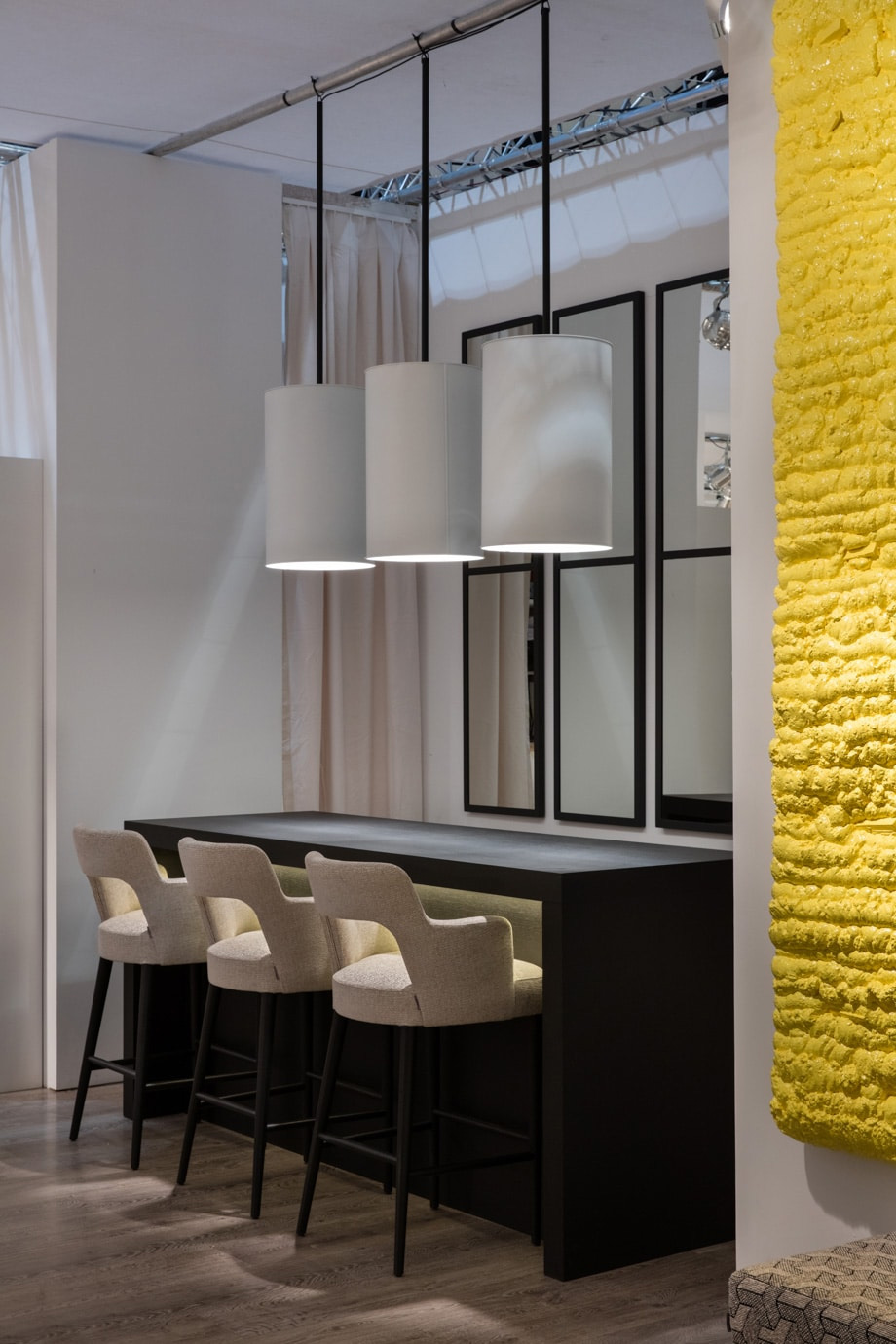 Dimensions : l 55 x h 108 x p 55 cm Structure en hêtre massif, garnissage fixe, pieds en frêne tabouret