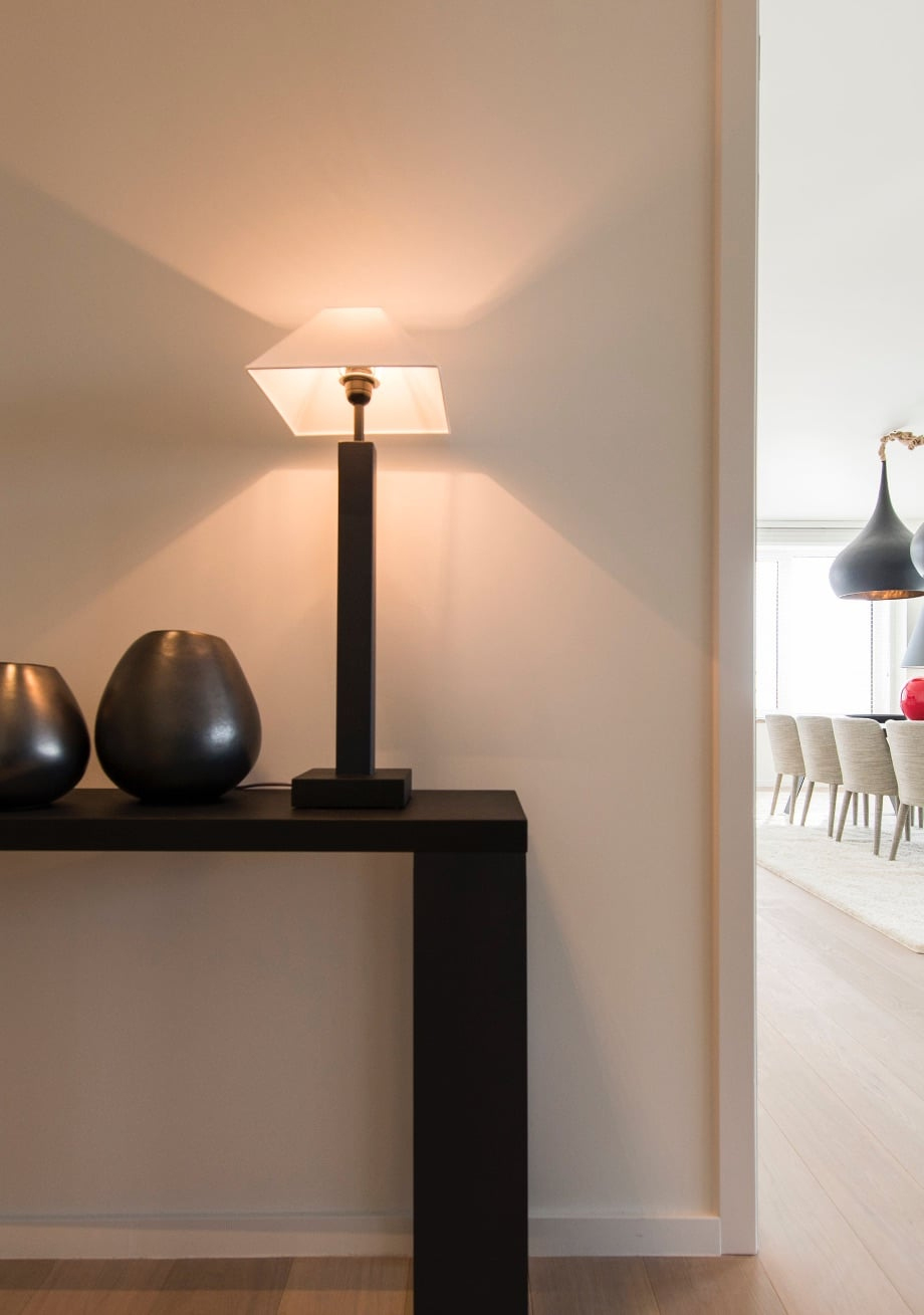 Dimensions : l 120/150/200 x h 76 x p 30 cm Plateau en bois, pieds en acier console