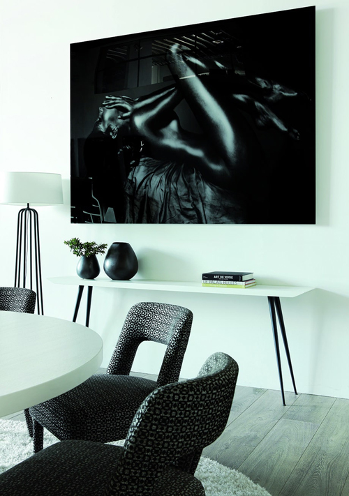 Dimensions : l 150/200 x h 75 x p 35 cm Plateau en bois ou céramique, pieds en acier console