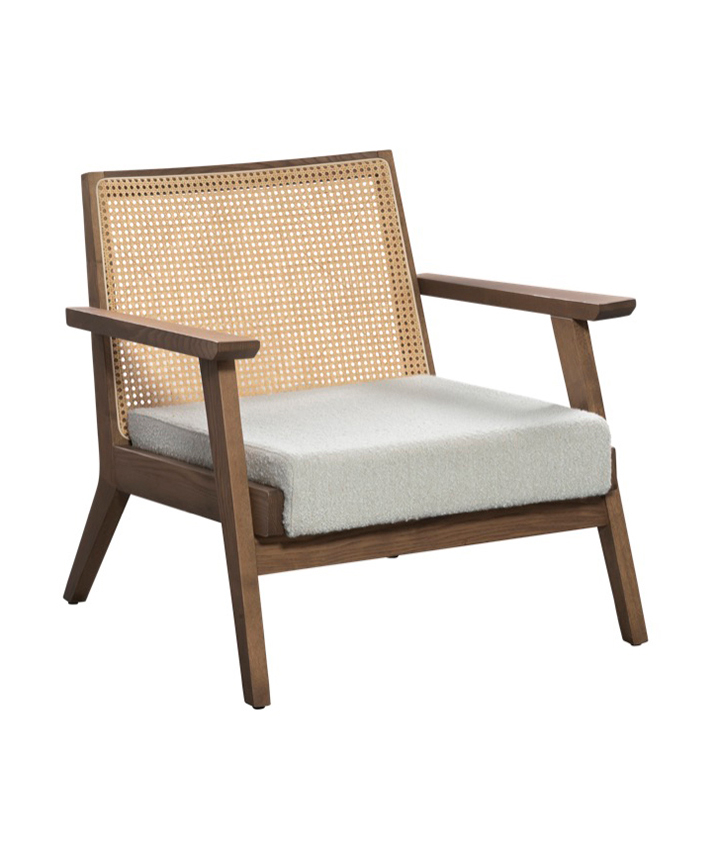 Dimensions : l 74 x h 73 x p 74 cm fauteuil en bois, tissu et cannage