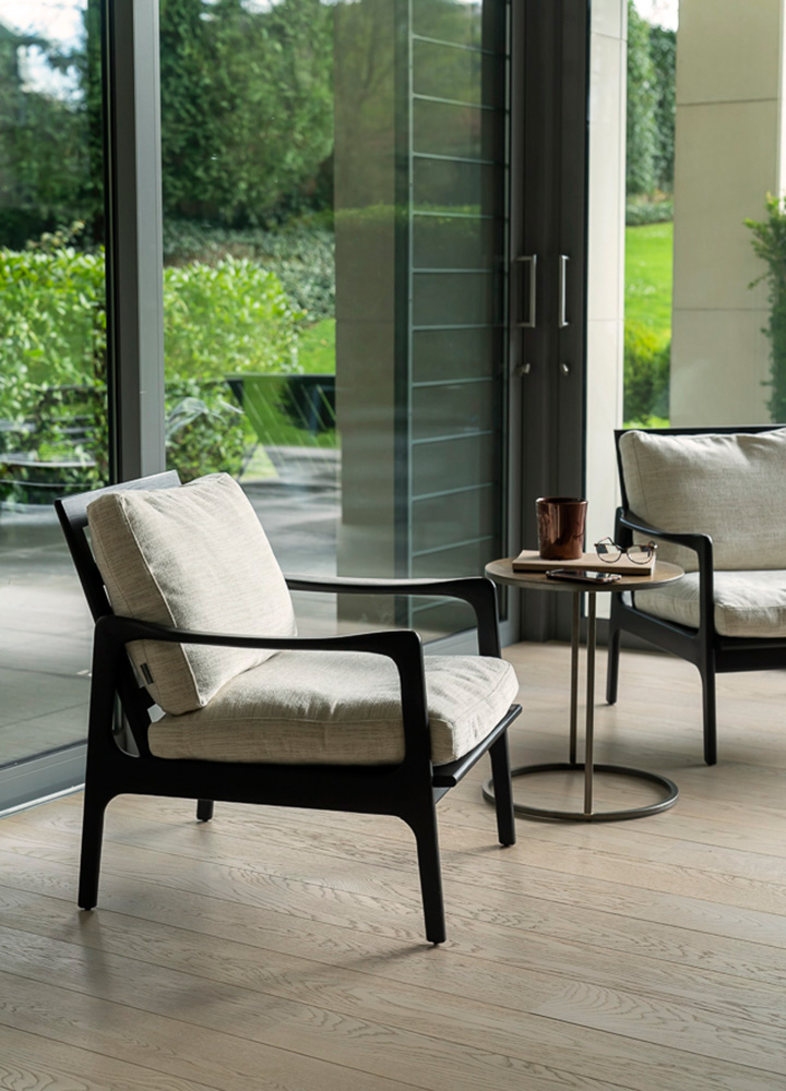 Dimensions : l 69 x h 75 x p 73 cm Structure et pieds en frêne massif, entièrement déhoussable fauteuil
