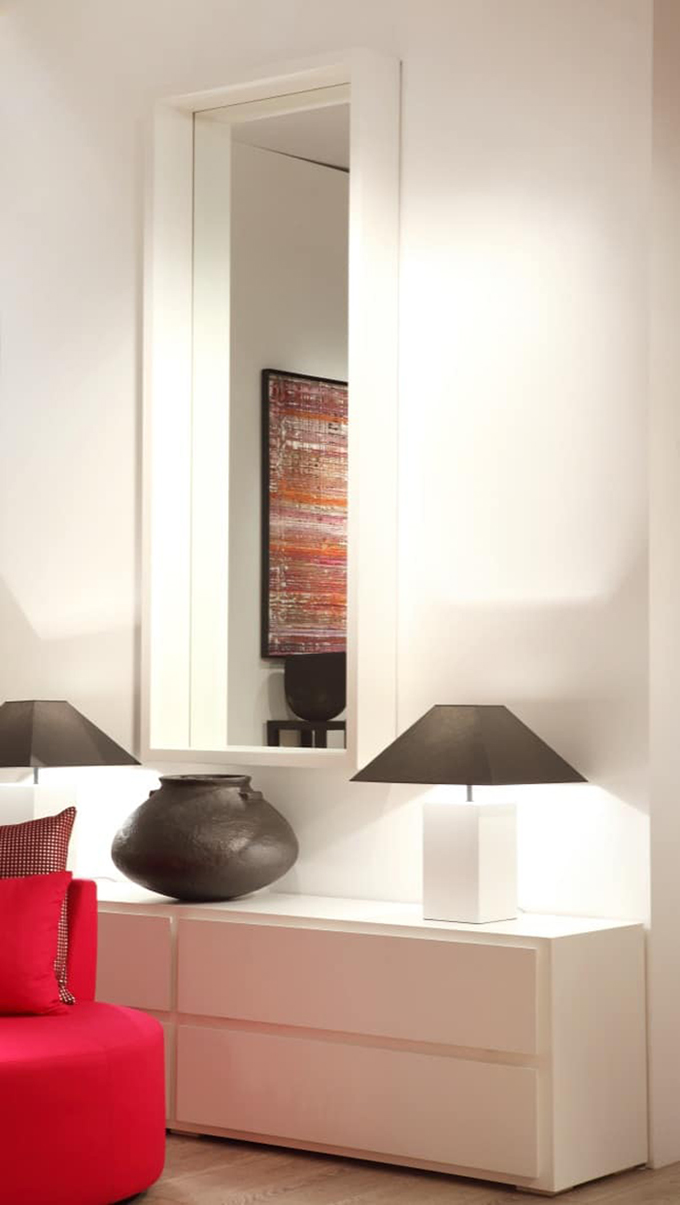 Dimensions : l 60/80/100 x h 60/.../200 x p 18 cm Cadre en bois, disponible en chêne teinté et laqué mat miroir