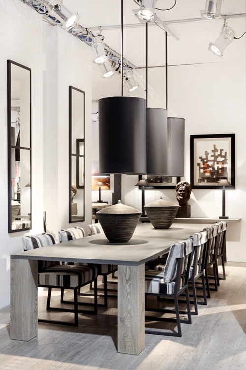 Dimensions : l 200/220/250/300 x h 75 x p 110 cm Plateau en métalisation à froid ou laqué mat, pieds en chêne massif, brossé, grisé et blanchi. table à manger