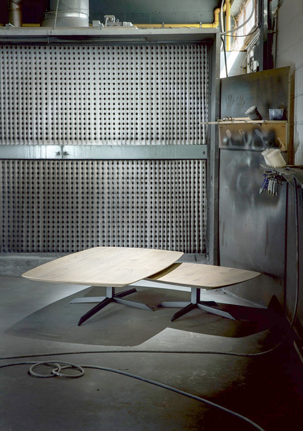 Dimensions : l 90/180 x h 33/38 x p 90/100 cm Plateau en bois ou céramique, pied en acier table basse