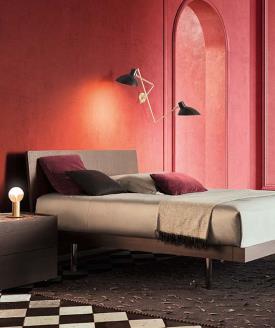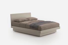 Un lit polyvalent décliné en de nombreuses versions. Ici, la personnalisation des différents éléments laisse libre cours aux goûts de chacun. La structure se compose de lignes simples et épurées et se décline en bois, laque mate ou brillante, ou encore en cuir rigide pour un effet encore plus sophistiqué. Deux options de sommier sont proposées : une version classique avec pieds ou une version avec rangement et plinthe encastrée pour une allure légère et aérienne.